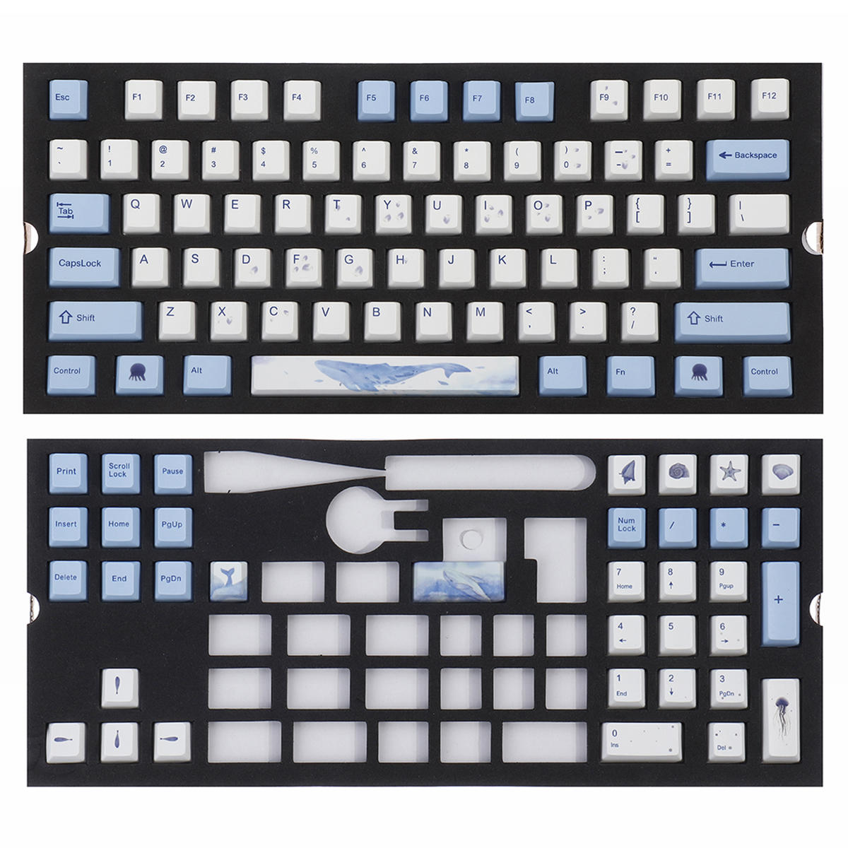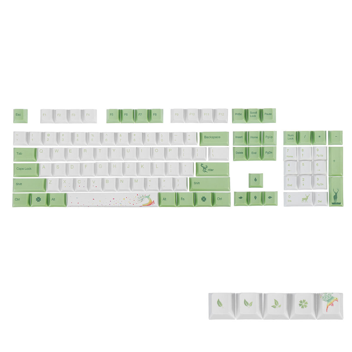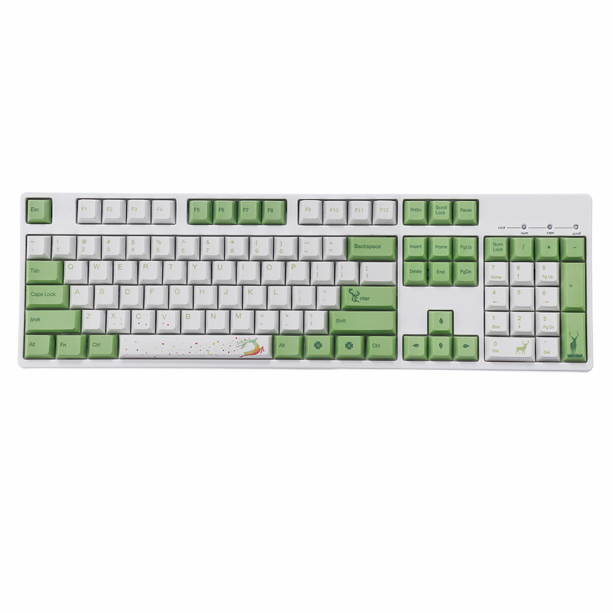7.合計108個のキーキャップ:104個のキー、87個のキー、キーボードの66個のキーを使用できます。従来のテキストキーキャップに加えて、特別なカスタマイズパターンキーキャップがあります。キー)、従来のキーキャップのインストール後、カスタムキーキャップを使用して従来のキーキャップを交換し、表示と楽しみを追加します。