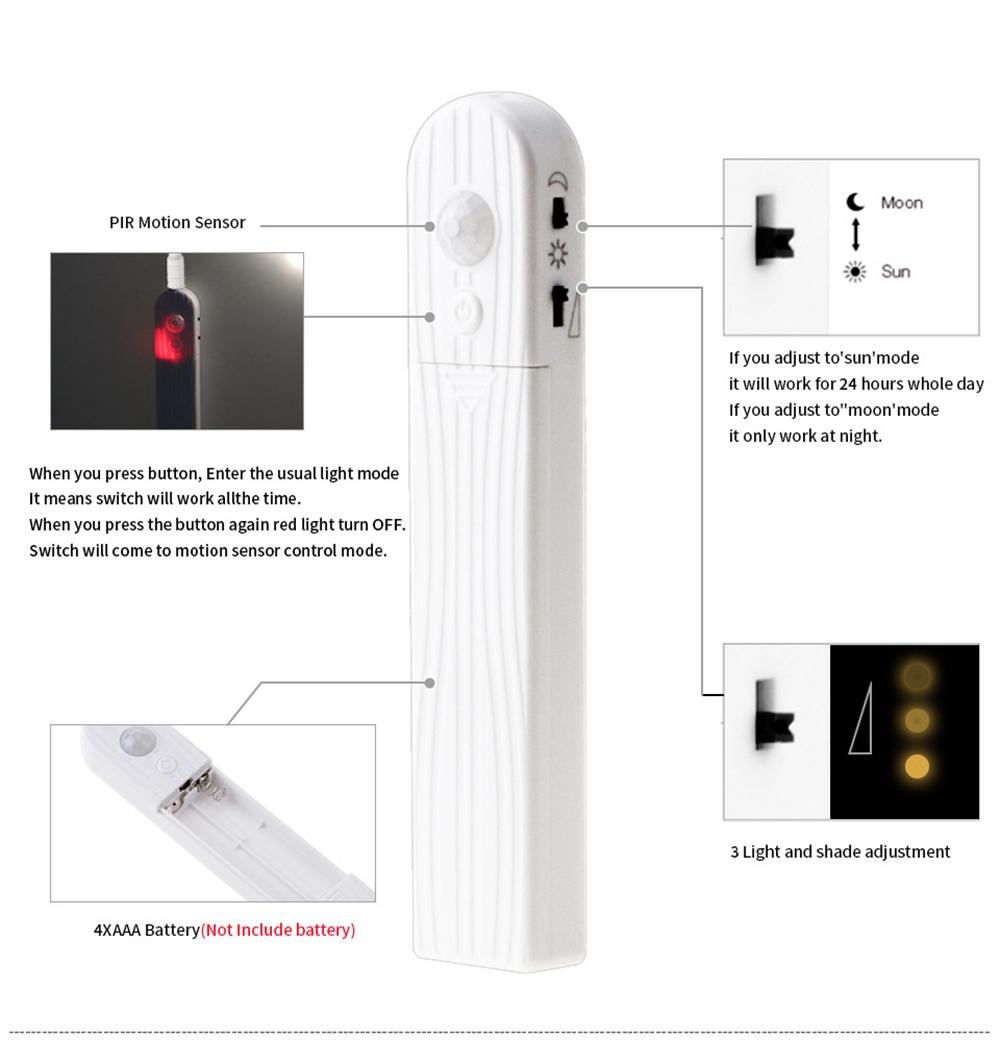 バッテリー駆動1M 2M PIRキャビネットのワードローブ用モーションセンサーで調光可能なLEDストリップライト COD