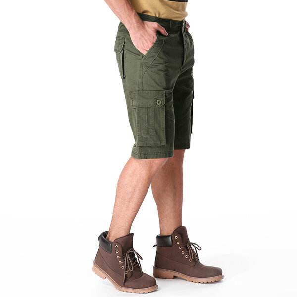 メンズカジュアルコットンビッグポケットルーズカーゴミリタリーショーツ COD