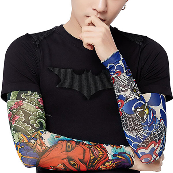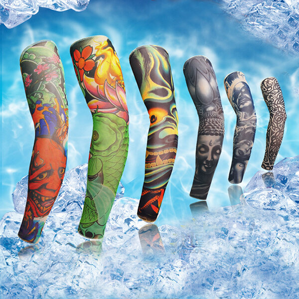 タトゥーアームクーリングスリーブ手袋サマースポーツサイクリング自転車バイク日焼け止めドライビンググローブ COD