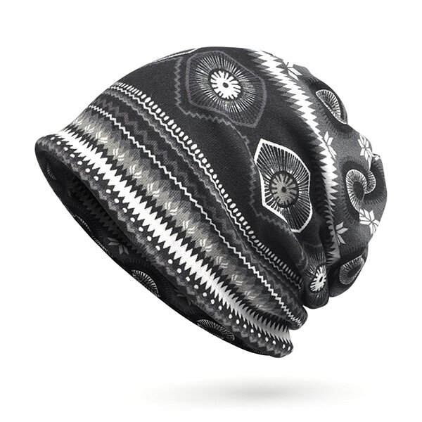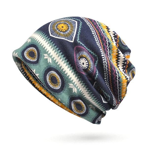 女性プリントビーニーハットAntumnウォーム多機能カラースカーフカジュアルボンネットキャップ COD