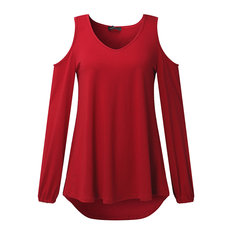 女性セクシーな花エンボレーションカジュアルスリーブオフショルダーブラウス
