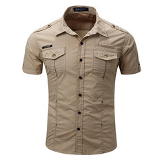 Mens Outdooors Summer Multi Pocket Plusサイズ半袖カジュアルカーゴスリムフィットシャツ