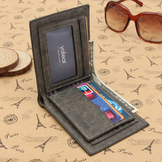 メンズPUレザー二つ折り財布IDビジネスクレジットカードホルド