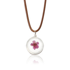 ラブリー ドライ花 クリスタル ボール ペンダント ワックス ロープ 鎖骨ネックレス