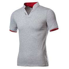 バングッドファッションレジャーVネックソリッドカラーTシャツメンズアウトドアカジュアルショートスリーブトップスティーズ