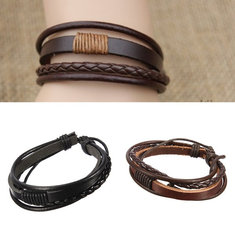 メンズ 多層 部族 織り サーフ レザー ブレスレット リストバンド