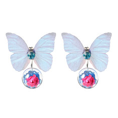 女性のためのトレンディなクリスタルガラスのボールの花の蝶のファブリックのイヤリング
