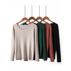 高弾性の女性波ラウンドネックシャツプルオーバーニットセーター